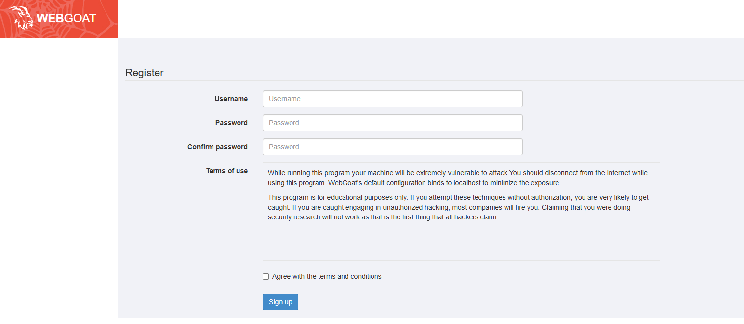 Once the image is pulled and the container is up and running you can visit http://<IP-OF-HOST>:8080/WebGoat